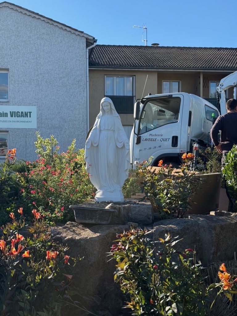 Fourniture et pose d’une statue de la Vierge pour une commune.